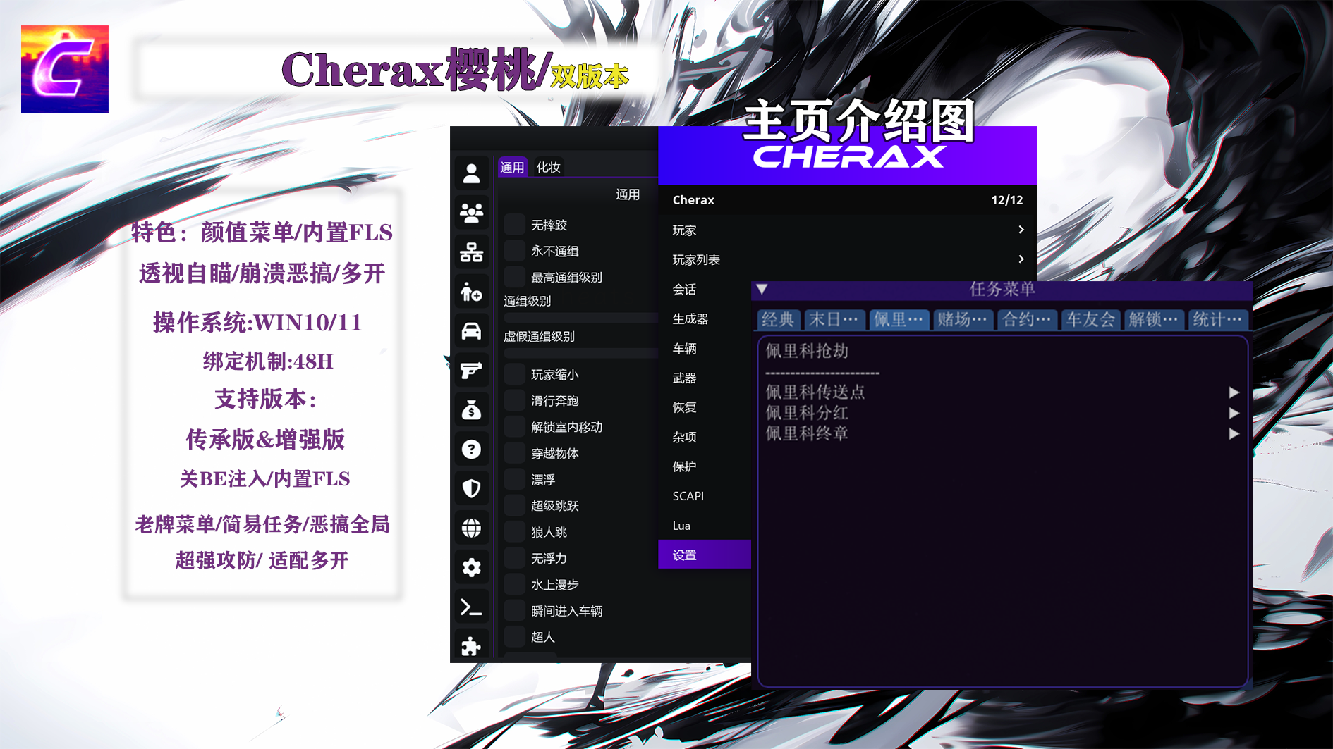 菜单兼容系统Win10\Win11,支持三大平台Steam、Epic、R星